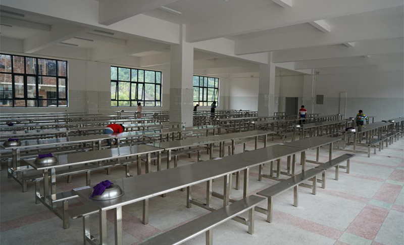 湖南省安化縣奎溪鎮(zhèn)完小現(xiàn)有13個(gè)教學(xué)班,學(xué)生592人,33名教職員工。以前由于學(xué)校食堂太小、餐桌破爛不堪,而且沒有凳子,學(xué)生們只能分批次就餐,二十幾個(gè)孩子圍在四張拼在一起的餐桌旁站著吃飯。為了解決孩子們的就餐環(huán)境,學(xué)校通過各種努力貸款新修建了學(xué)校食堂,新學(xué)期已投入使用,但舊的餐桌已無法繼續(xù)使用。為保障孩子們能有一個(gè)干凈整潔、溫馨如家的食堂,長(zhǎng)房集團(tuán)“藍(lán)絲帶”愛心傳遞基金向奎溪鎮(zhèn)完小捐贈(zèng)了70套不銹鋼餐桌椅,徹底解決了孩子們“站著吃飯”的問題。