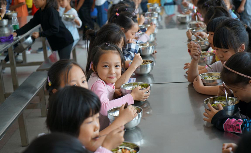 孩子們?cè)?jīng)站著吃飯的場(chǎng)景